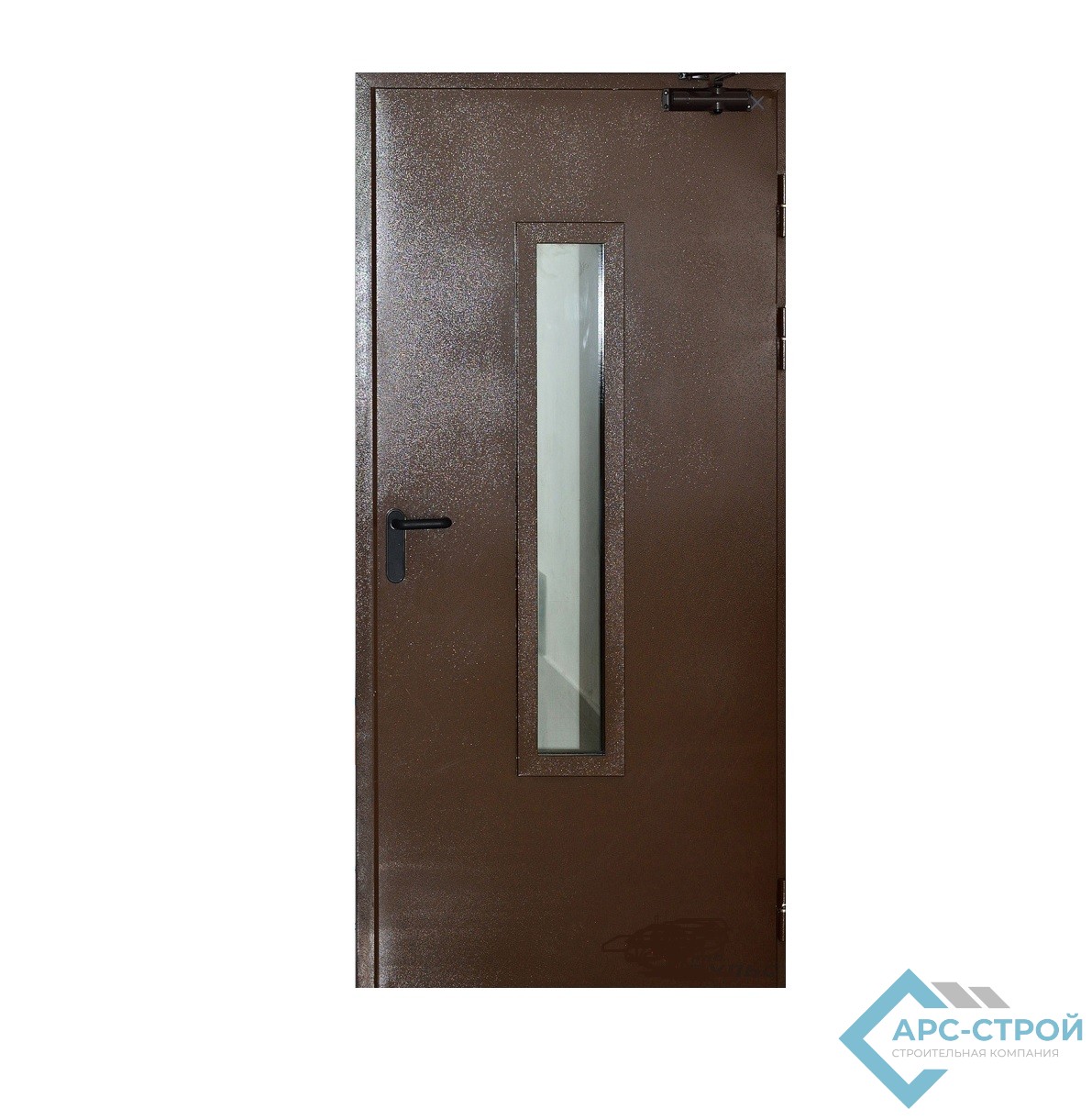 Дверь противопожарная металлическая однопольная АРС-01/30К (EI 30) оцинкованная с остеклением Цвет (RAL): 7035 Светло-серый Тип двери: Однопольные Тип коробки: Угло-торцевая Стеклопакет: Остекление до 25%